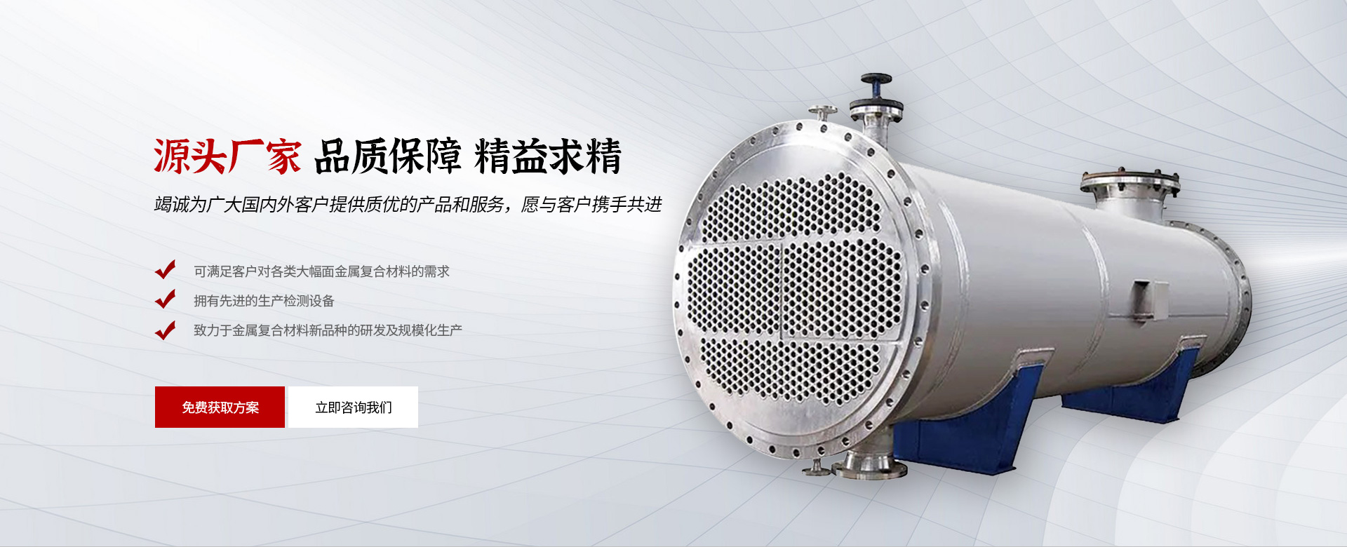 • 14年來(lái)一直致力于復(fù)合板及壓力容器設(shè)備的研發(fā)與生產(chǎn)。長(zhǎng)期以來(lái),公司始終保持與高校及科研單位的緊密合作。